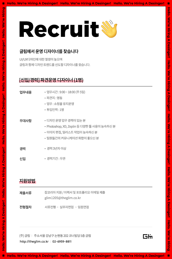 [신입/경력] 파견운영 디자이너 채용 (주5일/야근없음)